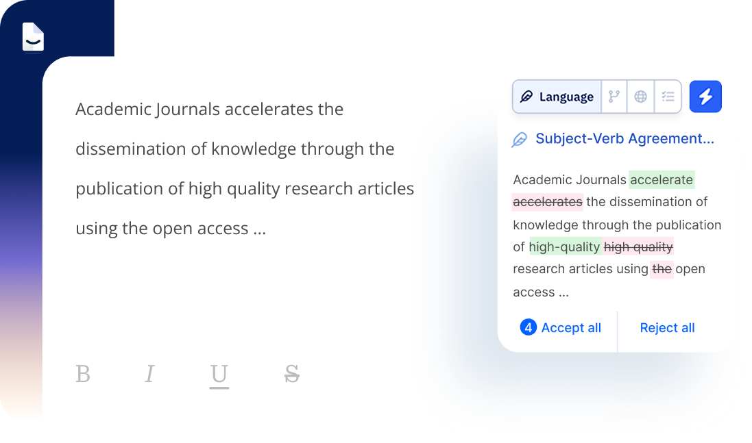 Paperpal is an AI-powered writing assistant designed to improve the quality of research manuscripts by not only providing real-time language and grammar suggestions, but also other features like research and citation tools, AI review, plagiarism and submission checks etc. Read more