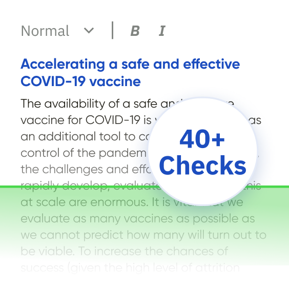 Our team of 100+ PhD reviewers for human checks help provide an in-depth assessment of manuscripts.