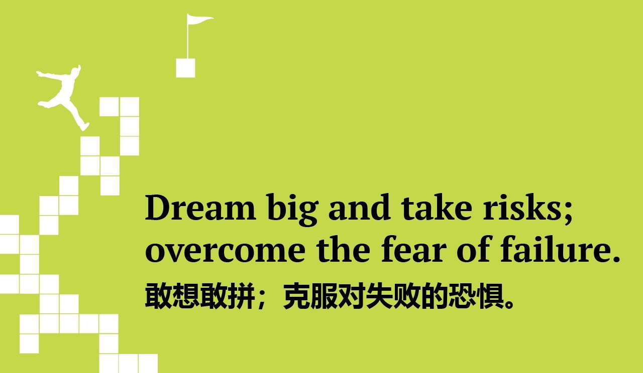 失败胜于无为。当你尝试新事物或难为之事时,不要让对失败的恐惧束缚住。即使你没有取得成功,也要从中吸取教训、继续前进!