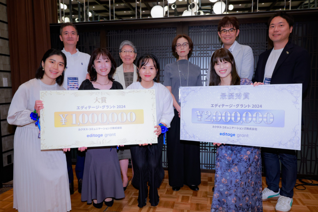In 2024, Editage Grant awarded JPY 1 million (approximately USD 6300) each to five winners, with an additional JPY 1 million to the top winner, totaling JPY 2 million in funding. The winners of the 2024 Editage Grant program were Natsuko Miyokawa, Valencia Joseph Evangelista, Honoka Ishihara, Kaoru Iwanaga, and Hana Tomoi.