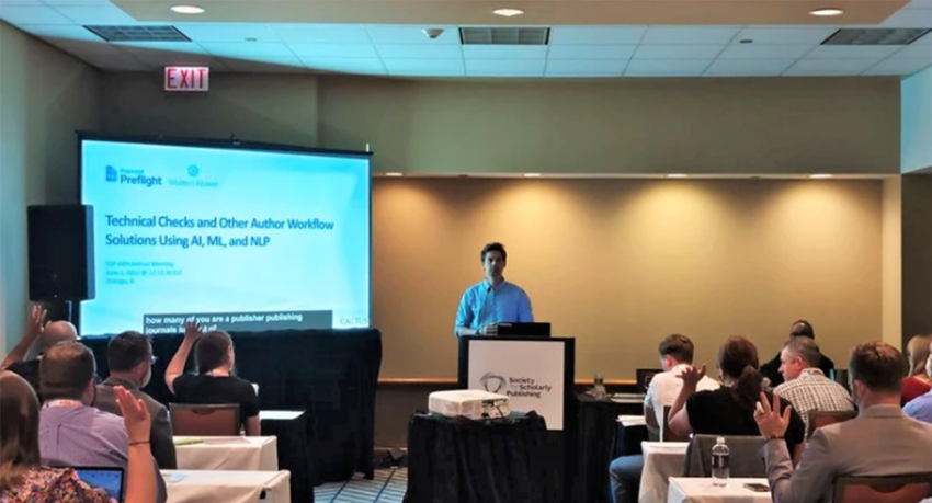 We opened with an extremely well-attended session on Paperpal solutions by Thomas Laursen and Duncan MacRae (Director, Editorial Strategy and Publishing Policy, Wolters Kluwer), where they spoke about how Paperpal’s plug-and-play AI solution can help publishers get better manuscripts with fewer reviewer cycles.